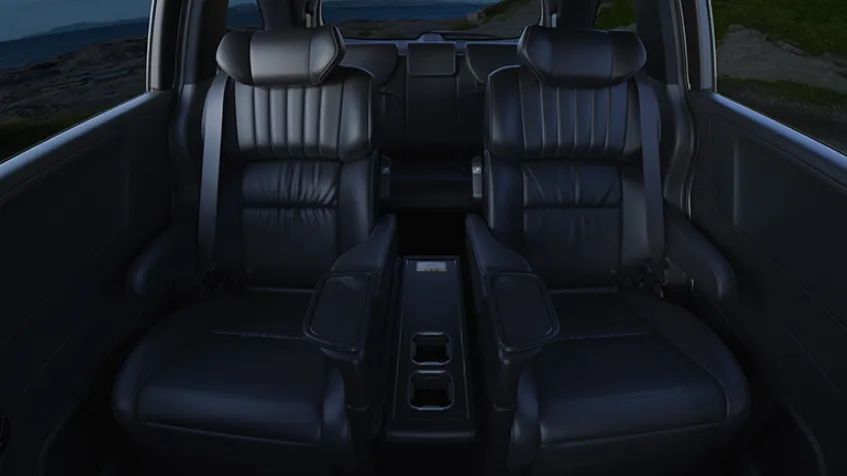 まず特徴的なのは、本革シートで高級感があって快適な装備です。高級ミニバンであることを感じさせてくれる装備。