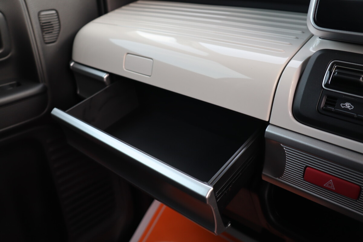 ダッシュボード周りが、スーツケースのようなデザインになっており、助手席の前にあるインパネアッパーボックスまで伸びています。