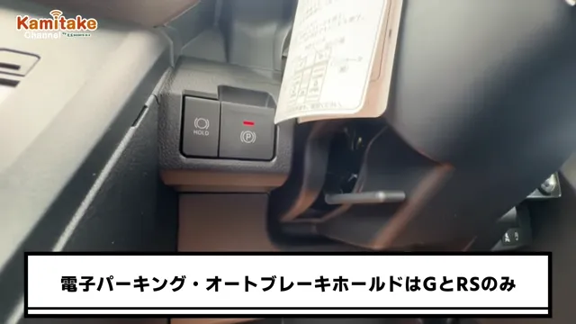 軽自動車にも搭載車種が増えてきている電動パーキングブレーキも搭載されています。