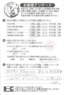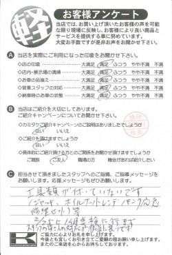 368ページ目|カミタケモータース枚方本店のアンケートハガキ