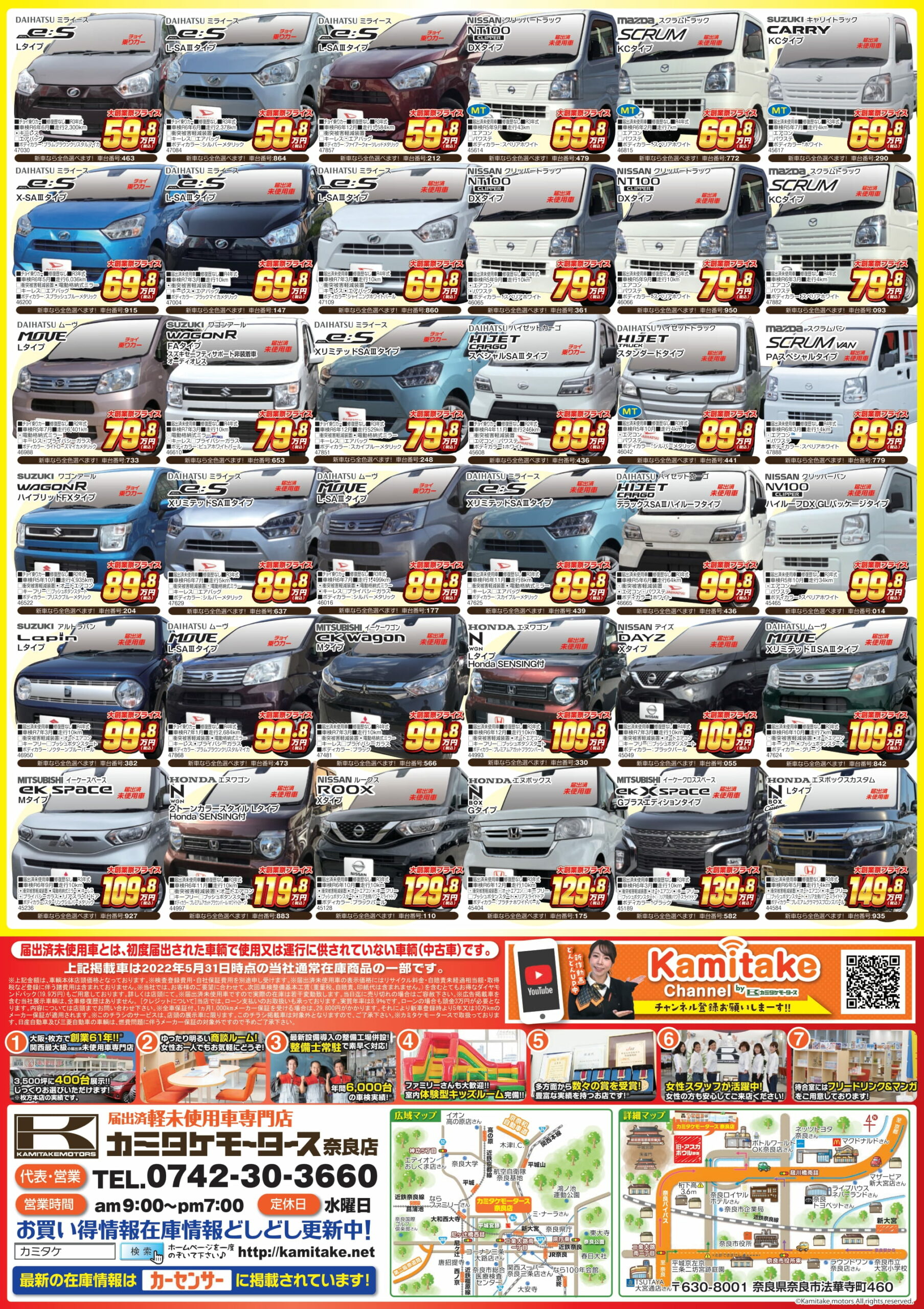 チラシには軽未使用の一部を記載しておりますが、普通車も多数取り揃えております。