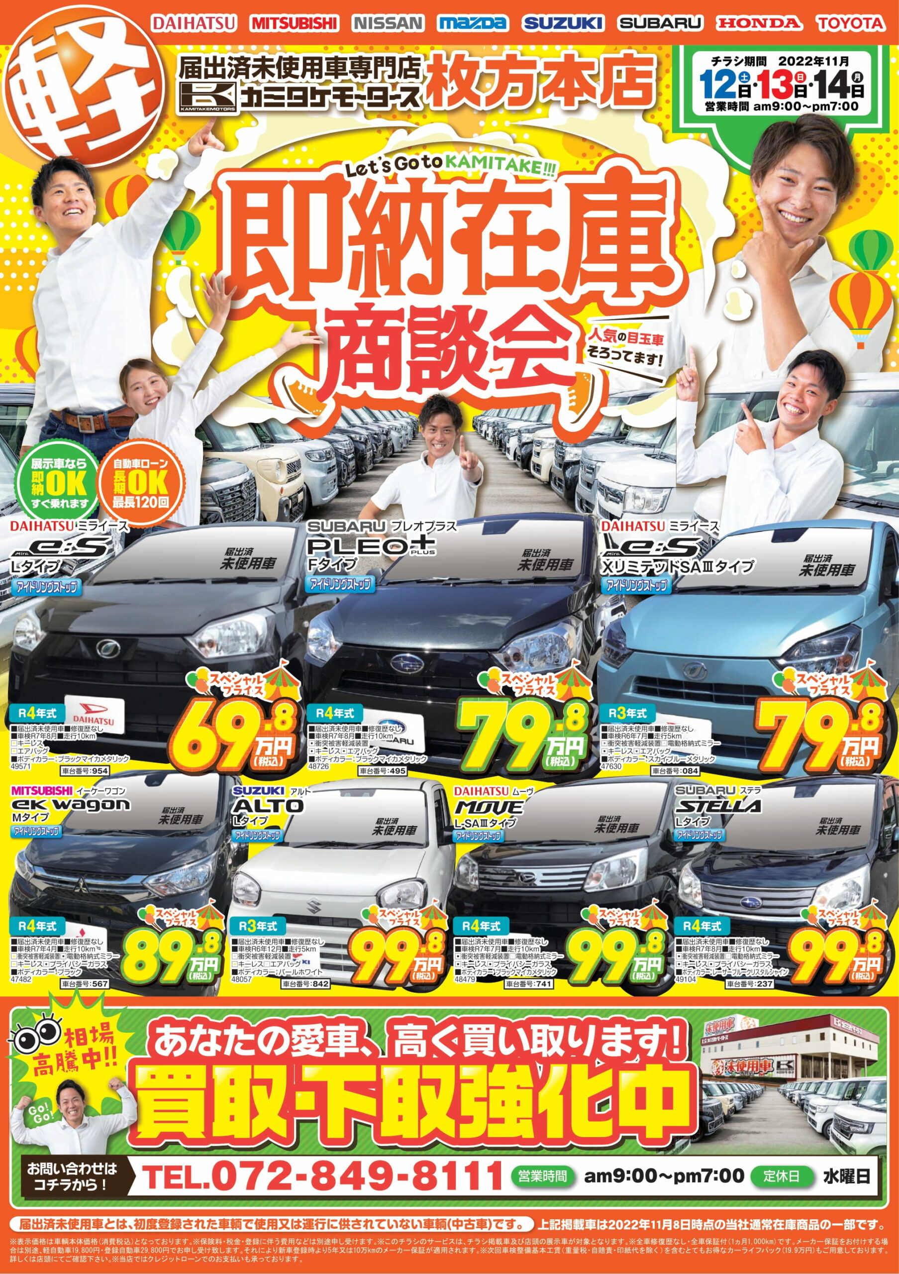 外出は避けたい。でもセール車は気になるお客様はカミタケ各店までお問い合わせ下さい。