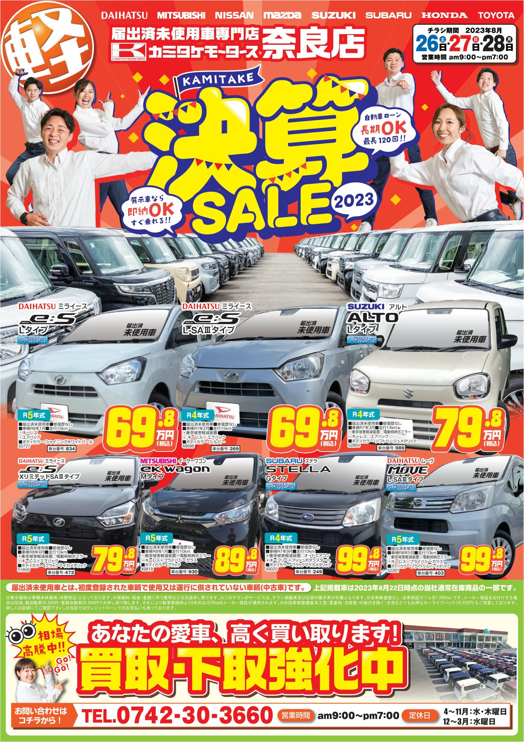 外出は避けたい。でもセール車は気になるお客様はカミタケ各店までお問い合わせ下さい。